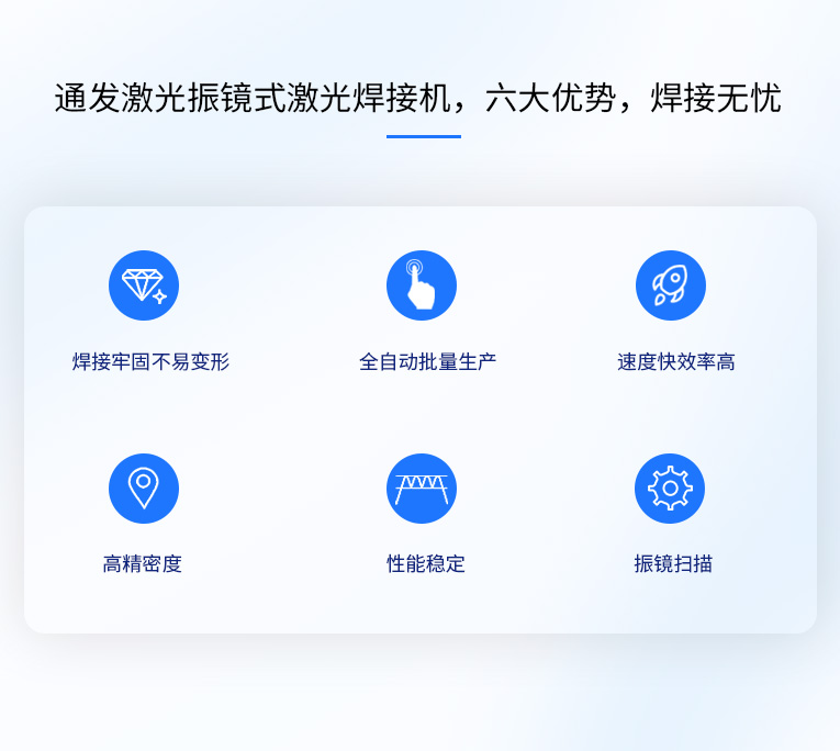 通發(fā)激光TFL-180SW振鏡式激光焊接機(jī),采用2軸高速掃描振鏡,焊接速度是工作臺(tái)移動(dòng)的5倍,滿足0.5mm以內(nèi)料厚不銹鋼多點(diǎn)擊穿疊加焊接,也適用手機(jī)五金不銹鋼螺柱高速激光焊接加工。