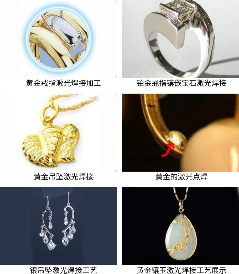 8、可激光焊接各種金屬材質(zhì):金,銀,鉑金,銅,鈦,不銹鋼等各種金屬材料。包括:戒指,耳環(huán),手鏈,項(xiàng)鏈,領(lǐng)帶夾,袖口等珠寶首飾,金屬飾品的激光焊接。