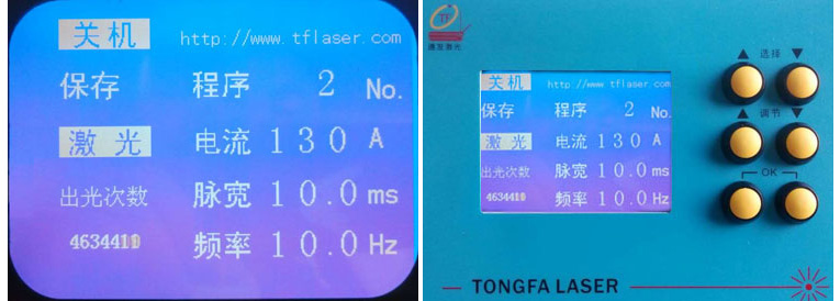 2、本首飾激光點(diǎn)焊機(jī)軟件可選擇中文或者英文界面,對(duì)不同加工位置選擇相應(yīng)的激光焊接加工參數(shù)。由選擇按鈕移動(dòng)光標(biāo)到相應(yīng)的參數(shù)位置,由調(diào)節(jié)按鈕調(diào)節(jié)參數(shù)的大小;