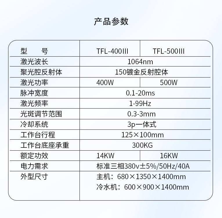 通發(fā)激光TFL-400Ⅲ大功率模具激光焊機(jī),比普通激光焊機(jī)修復(fù)模具效率快1.5-2倍,適合0.3-0.6激光焊絲,大功率更適合修復(fù)鈹銅模具、鋁模等較難修復(fù)的模具。